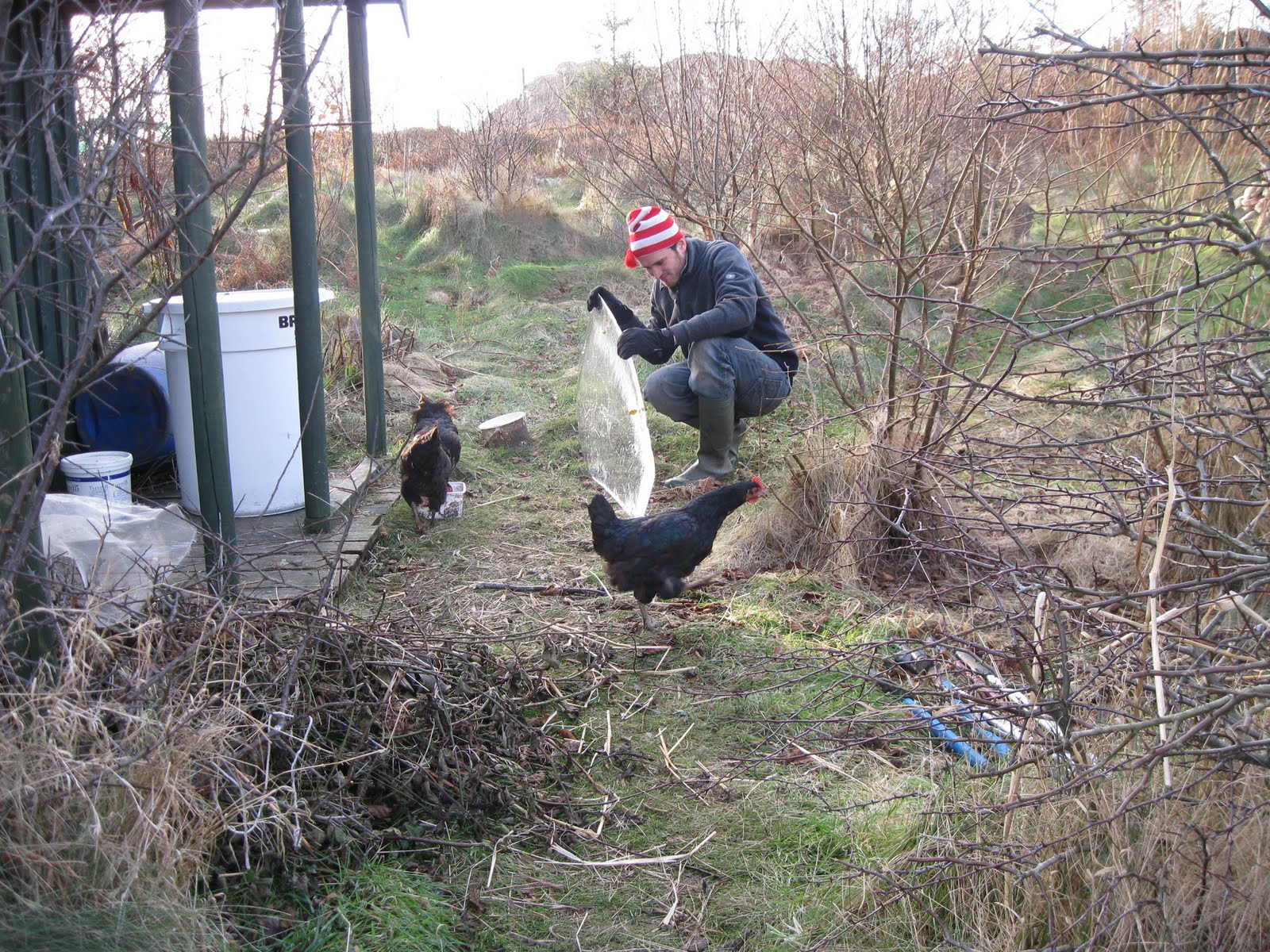 The garden's still providing us with plenty of salad (in the polytunnel) also leeks, kale, sprouts...no doubt Becky will be popping in at some point to check we're looking after it! Boo-cat is getting friendly again, this morning he let me pick him up and sat quite happily on my lap in the polytunnel. The chickens seem happy enough to keep on laying unless the weather is really wet and cold.